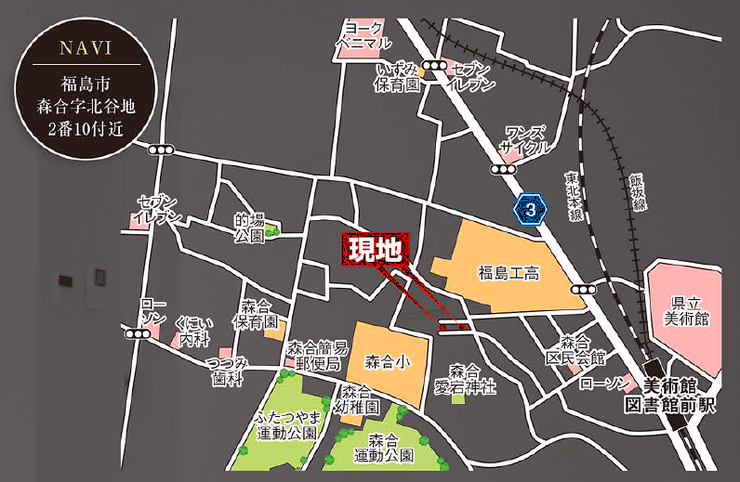 福島交通飯坂線『美術館図書館前』 徒歩8分 (約640m)