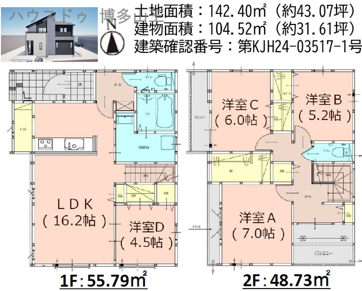 | 建物面積 | 104.52㎡ | 駐車場 | あり 普通:2台 |