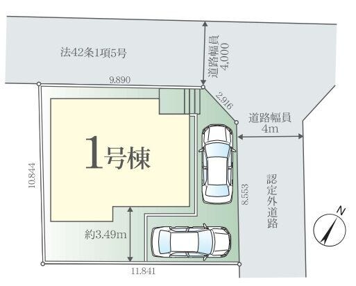 | 土地面積 | 実125.05㎡(37.82坪) | 接道 | 北西側(私道)幅 約4.1m 間口 約9.89m 北東側(私道)幅 約4.0m 間口 約11.46m |