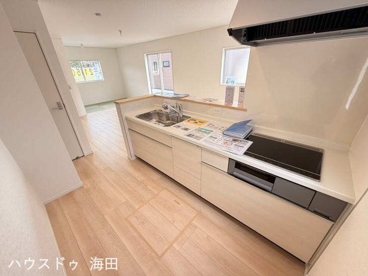 | 備考 | 安心のオール電化 耐震等級3 省エネ性能ラベルあり 近隣に公共施設・商業施設があり便利な立地 住宅性能評価取得 システムキッチン 浴室乾燥機 防犯カメラ エコキュート シャワー付洗面化粧台 TVモニタ付インターホン シャワートイレ 駐車3台可能(車種による) 水路占用引継ぎあり ルーフバルコニーを除いた建物面積:95.57㎡ 網戸・シャッター・カーテンレール等についてはオプション工事 |