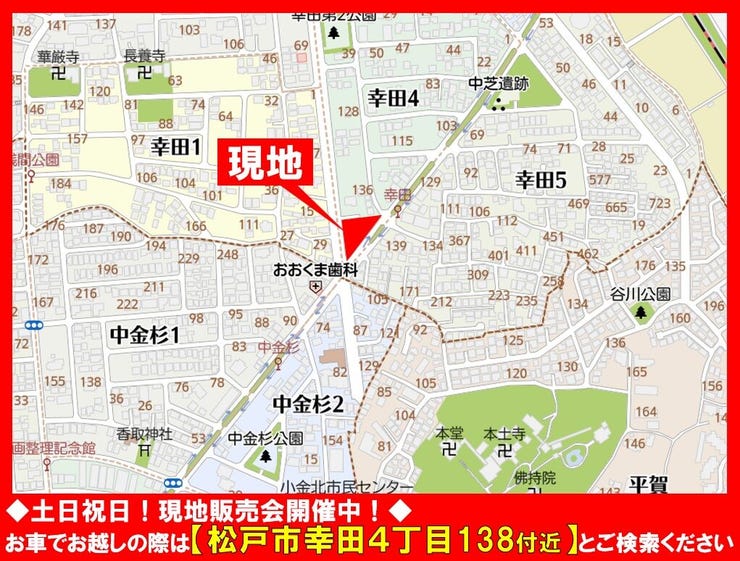 お車でお越しの際は【松戸市幸田4丁目138付近】とご検索ください!