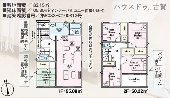 | 土地面積 | 実182.15㎡(55.10坪) | 接道 | 北側(公道)幅 約5.0m 間口 約9.08m |