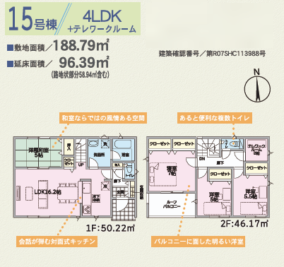 | 建物面積 | 96.39㎡ | 駐車場 | あり 普通:2台 軽:1台 |