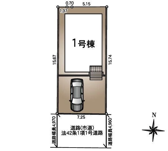| 土地面積 | 公113.81㎡(34.42坪) | 接道 | 南側(公道)幅 約4.9m 間口 約7.25m |