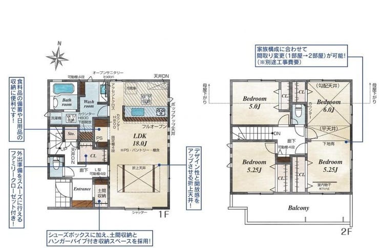 ■2階11.2帖洋室はライフスタイルに合わせて間取り変更可能です。(別途工事費要)