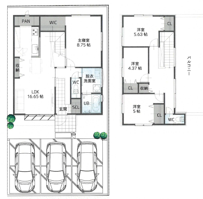 ・駐車並列3台可能