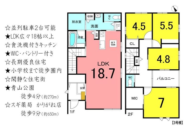 | 建物面積 | 107.45㎡ | 駐車場 | あり 普通:2台 |