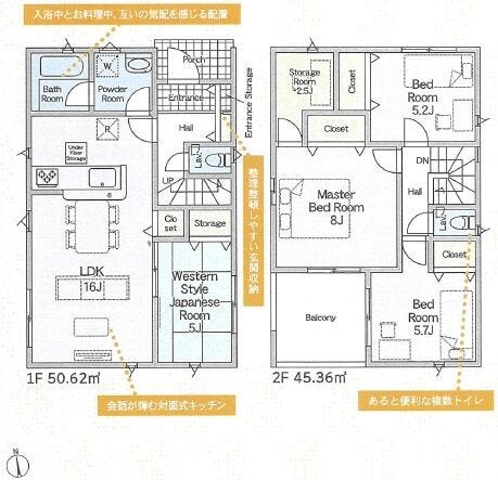 | 備考 | ■4LDK+多用途に使える2.5帖の納戸 ■リビング隣に5帖の和室 ■主寝室8帖 ■カースペース2台駐車可(車種による) |
