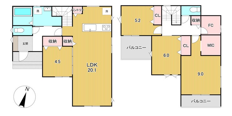 - 2面バルコニー