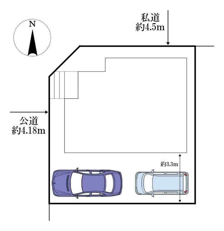 | 土地面積 | 100.34㎡(30.35坪) | 接道 | 西側(公道)幅 約4.2m 北側(私道)幅 約4.5m |