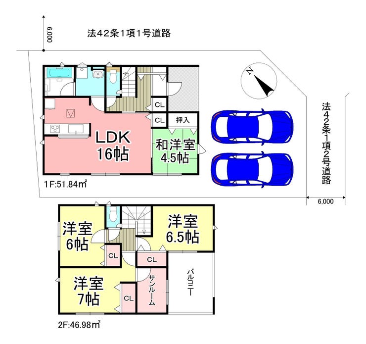 【1号棟 敷地約45坪 間取4SLDK 駐車場2台】