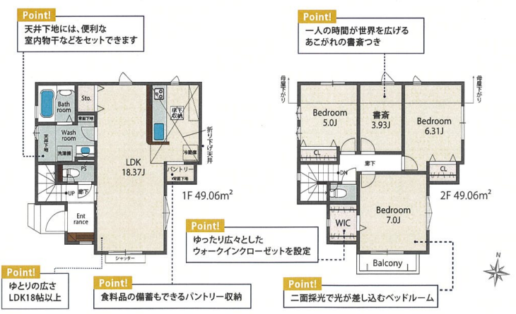 人気エリアに新築戸建が登場!駐車場1台分☆LDKは18帖超え、2階に様々な用途に使える書斎あり♪