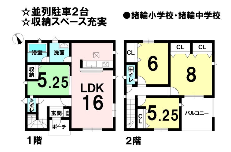 | 小学区 | 諸輪小学校 徒歩11分 (約818m) | 中学区 | 諸輪中学校 徒歩12分 (約966m) |