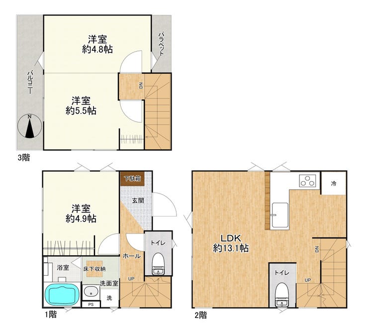 | 備考 | ◇JR埼京線「南与野駅」まで徒歩約10分♪ →JR埼京線「与野本町駅」、JR京浜東北・根岸線「北浦和駅」もご利用可能! \令和8年10月完成予定!ご家族に嬉しい2LDK♪/ →3階の約10.3帖洋室はお子様の成長に合わせて約4.8帖と約5.5帖に変更可能! →駐車場有※車種による →浴室乾燥機付きで雨の日でも安心♪ ※私道として約117.14㎡(持分1171分の157)と約0.98㎡(持分全部)所有しております。 ※前面道路幅員約4mにつき容積率が160%に制限されます。 ※建築基準法施行細則(角地緩和)に該当する場合は角地緩和の適用を受け建蔽率は70%となります。 ※土地・建物面積は確認済証に基づきます。 ※当該地は用途境にございます。 ◇エコス与野鈴谷店まで徒歩約6分(約450m) ドラッグストアセキ与野鈴谷店まで徒歩約5分(約400m) セブンイレブンさいたま新中里2丁目店まで徒歩約3分(約170m) 与野鈴谷郵便局まで徒歩約8分(約600m) 南与野たいよう保育園まで徒歩約2分(約150m) →周辺環境充実♪ |