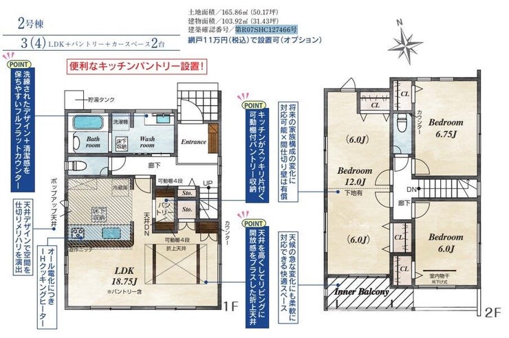 | 土地面積 | 165.86㎡(50.17坪) | 接道 | 北側幅 約4.8m |