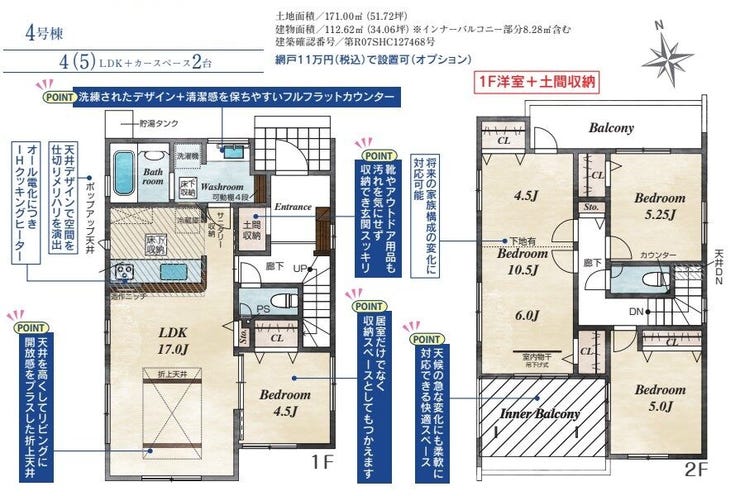 | 土地面積 | 112.62㎡(34.06坪) | 接道 | 北側幅 約4.8m |