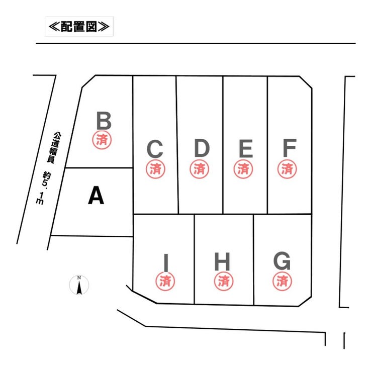 | 土地面積 | 184.83㎡(55.91坪) | 接道 | 西側(公道)幅 約5.1m 間口 約13.00m |