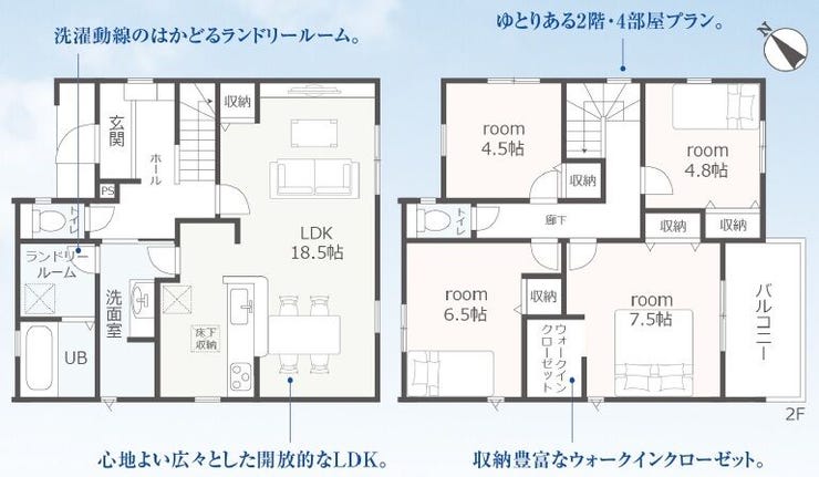| 備考 | ・インテリアの映える広々としたリビング18.5帖! ※建物、配置、外構は実際とは多少異なる場合があります。 ※図面と現況が異なる場合は現況を優先と致します。 |