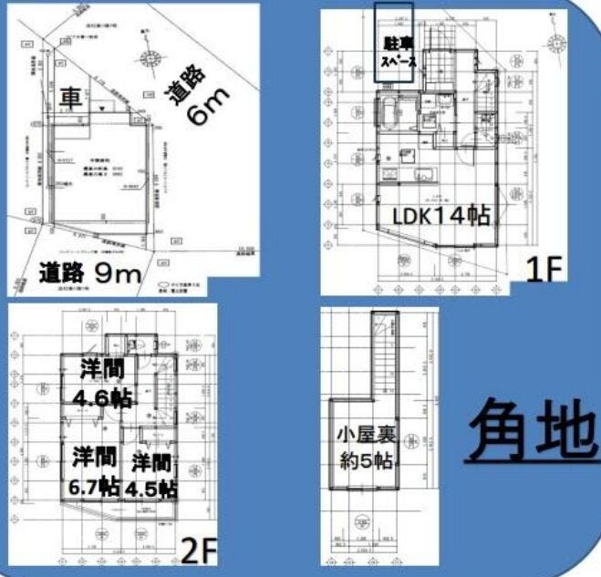 | 土地面積 | 実70.82㎡(21.42坪) | 接道 | 北東側(公道)幅 約6.0m 南側(公道)幅 約9.0m |
