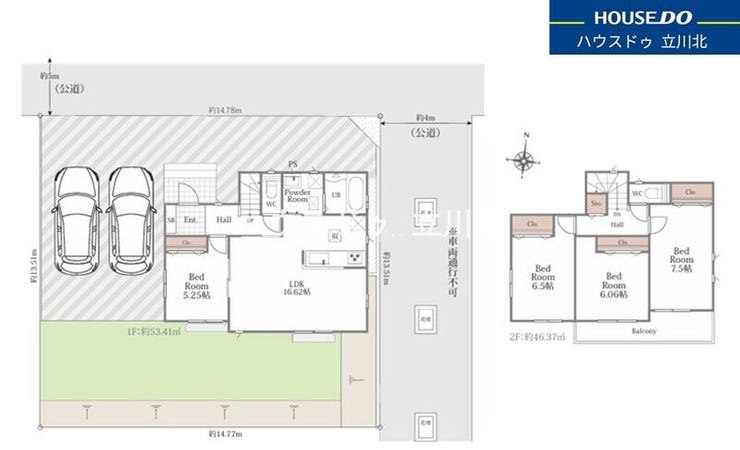 | 土地面積 | 実199.6㎡(60.37坪) | 接道 | 北側(公道)幅 約5.0m 東側(公道)幅 約4.0m |