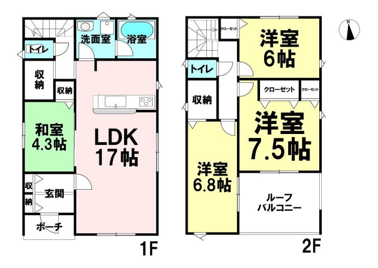 LDK17帖のゆとりある4SLDK住宅です。和室付きで来客時やお子様の遊び場にも便利。ルーフバルコニー付きで開放感のある住まいです。