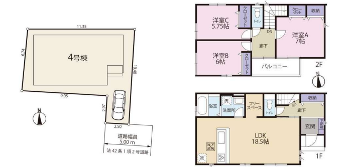 約18.5帖LDKと収納充実の4LDK住宅