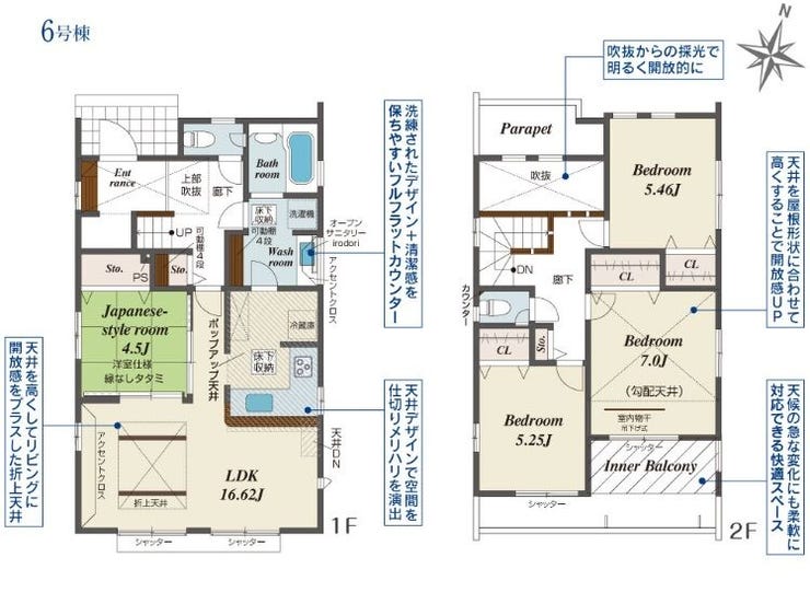 - 2面採光