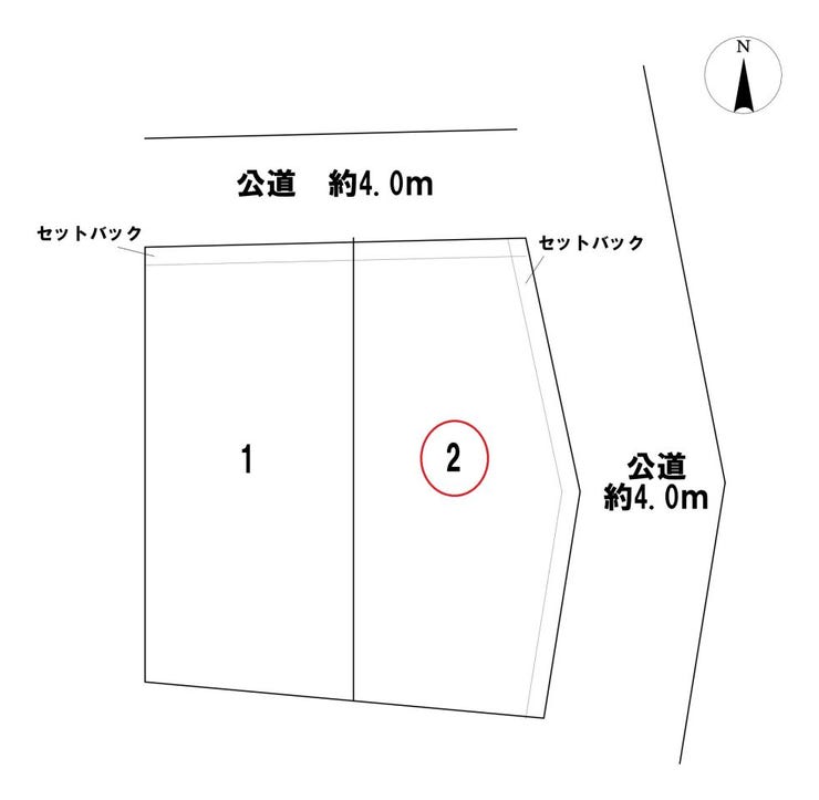 | 土地面積 | 151.02㎡(45.68坪) | 接道 | 北側(公道)幅 約4.0m 間口 約9.05m 東側(公道)幅 約4.0m |