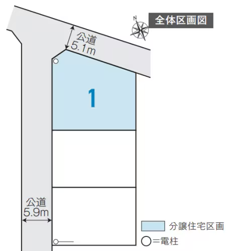 | 土地面積 | 公218.4㎡(66.06坪) | 接道 | 北側(公道)幅 約5.1m 西側(公道)幅 約5.9m |