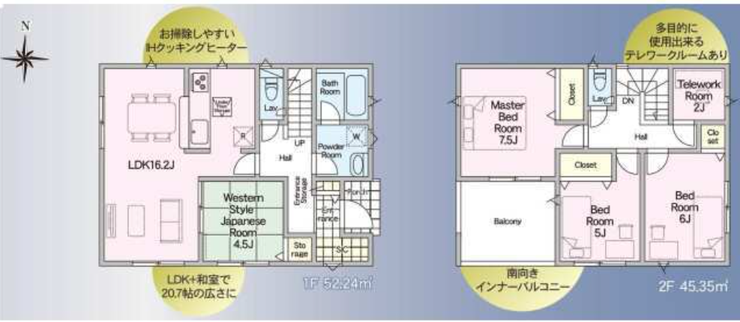 テレワークルームや収納も充実し、LDK+和室で20.7帖の開放感ある4LDK。