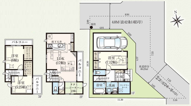 | 私道 | 別:46.23㎡ | セットバック | |