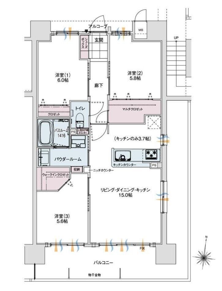- 2面バルコニー