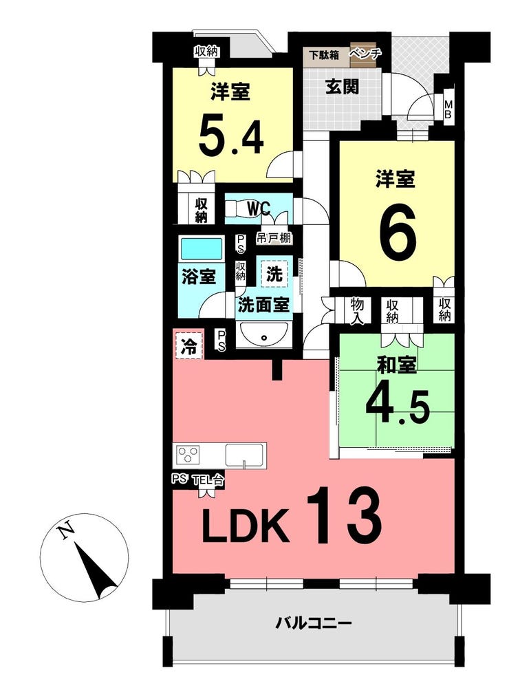 | 主要採光 | 南東向 | バルコニー | 南東向14.20㎡ |