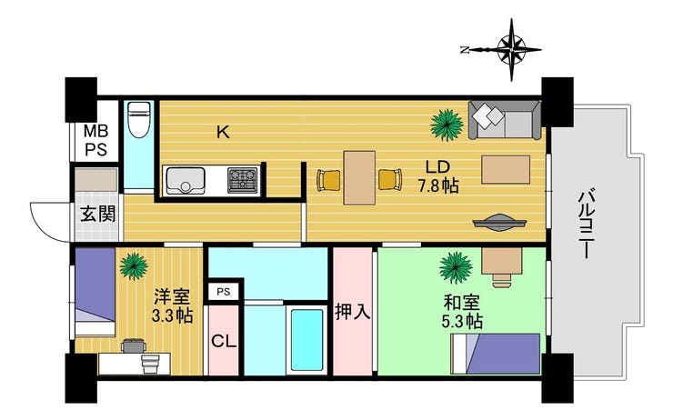 | 主要採光 | 南向 | バルコニー | 南向8.30㎡ |