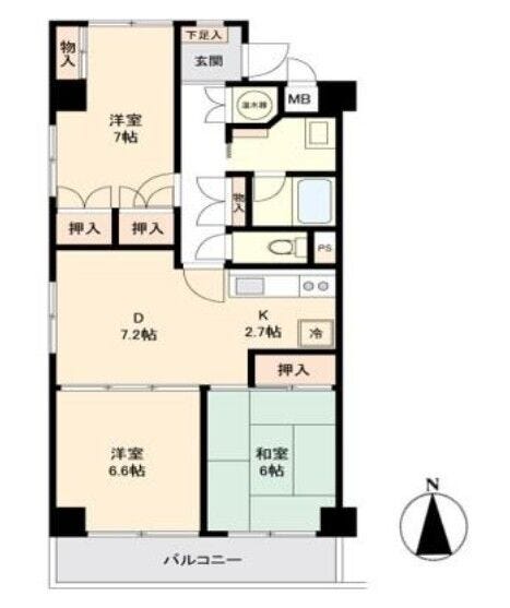 | 専有面積 | 壁芯 69.52㎡ | 所在階 | 5階建/3階部分 |