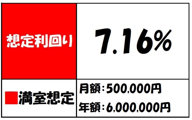| 収益情報 | 想定利回り:7.16% 想定家賃収入:6,000,000円 | ||