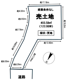 | 土地面積 | 実438.12㎡(132.53坪) | 接道 | 南側(私道)幅 約4.0m 間口 約4.00m |