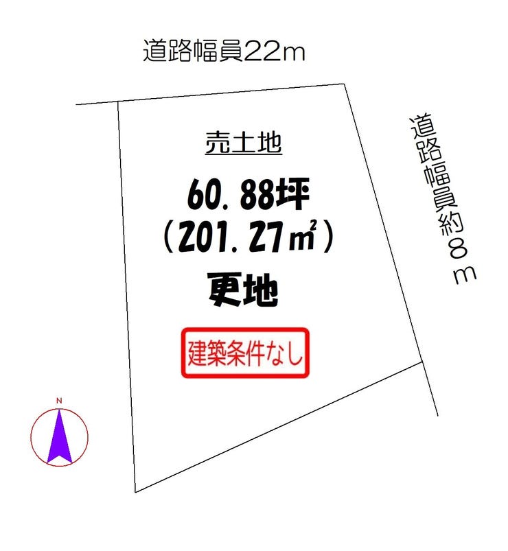| 土地面積 | 公201.27㎡(60.88坪) | 接道 | 北側(公道)幅 約22.0m 間口 約5.00m 東側(公道)幅 約8.0m 間口 約12.00m |