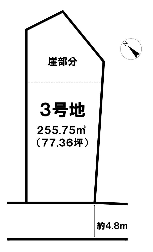 | 土地面積 | 255.75㎡(77.36坪) | 接道 | 南西側(公道)幅 約4.8m |