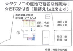 | 備考 | 他所在地:福知山市大字報恩寺小字小寺1-1 法令等制限:福知山市景観計画(自然景観保全ゾーン) 1,建築物の再建築には事前協議が必要です。 2,農地の売買には、一定の要件を満たし農業委員会の許可が必要。 |