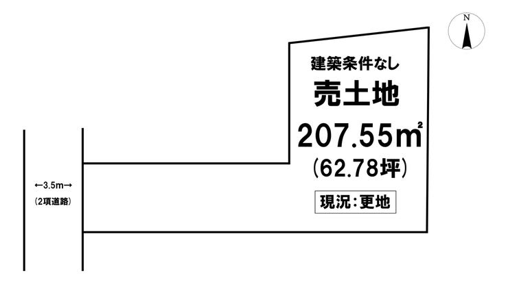 | 土地面積 | 公208.06㎡(62.93坪) | 接道 | 西側(公道)幅 約3.5m 間口 約5.00m |