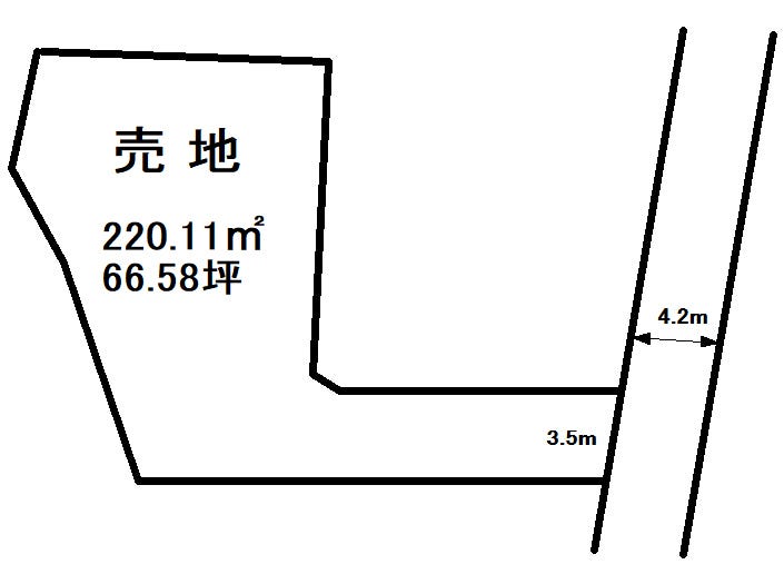 | 土地面積 | 公220.11㎡(66.58坪) | 接道 | 東側(公道)幅 約4.4m 間口 約3.50m |