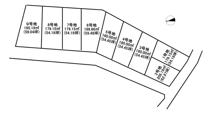 | 土地面積 | 208.19㎡(62.97坪) | 接道 | 南西側幅 約4.8m 間口 約12.44m 北西側幅 約6.0m 間口 約11.39m |
