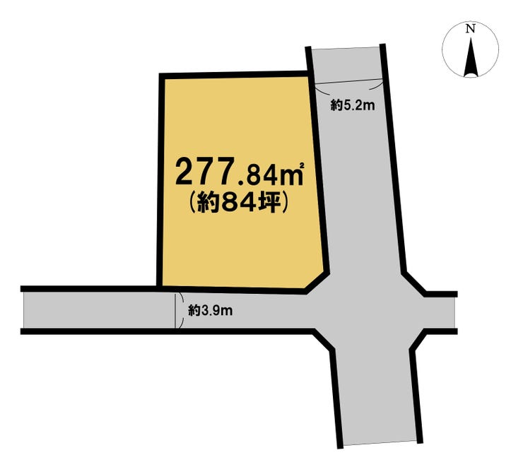 | 土地面積 | 公277.84㎡(84.04坪) | 接道 | 東側(公道)幅 約5.2m 南側(公道)幅 約3.9m |