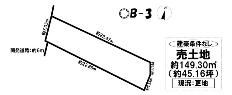 | 土地面積 | 公149.3㎡(45.16坪) | 接道 | 西側(公道)幅 約6.0m 間口 約7.05m |