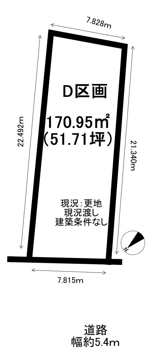 | 土地面積 | 170.95㎡(51.71坪) | 接道 | 北西側(公道)幅 約5.4m 間口 約7.81m |