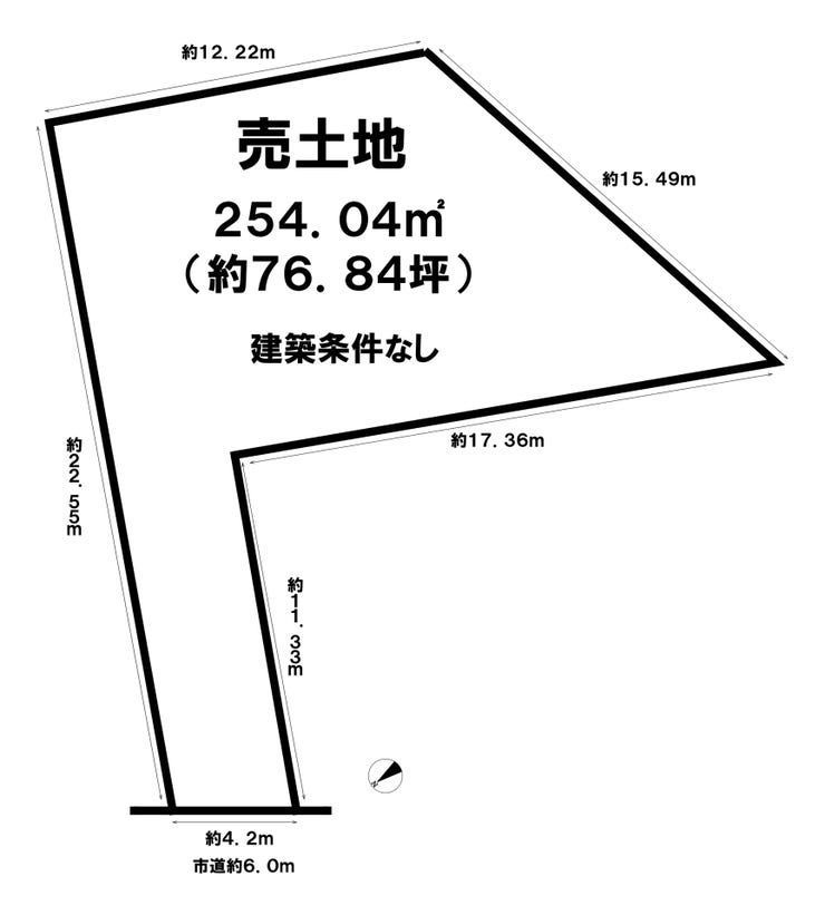 | 土地面積 | 254.04㎡(76.84坪) | 接道 | 北西側(公道)幅 約6.0m 間口 約4.20m |