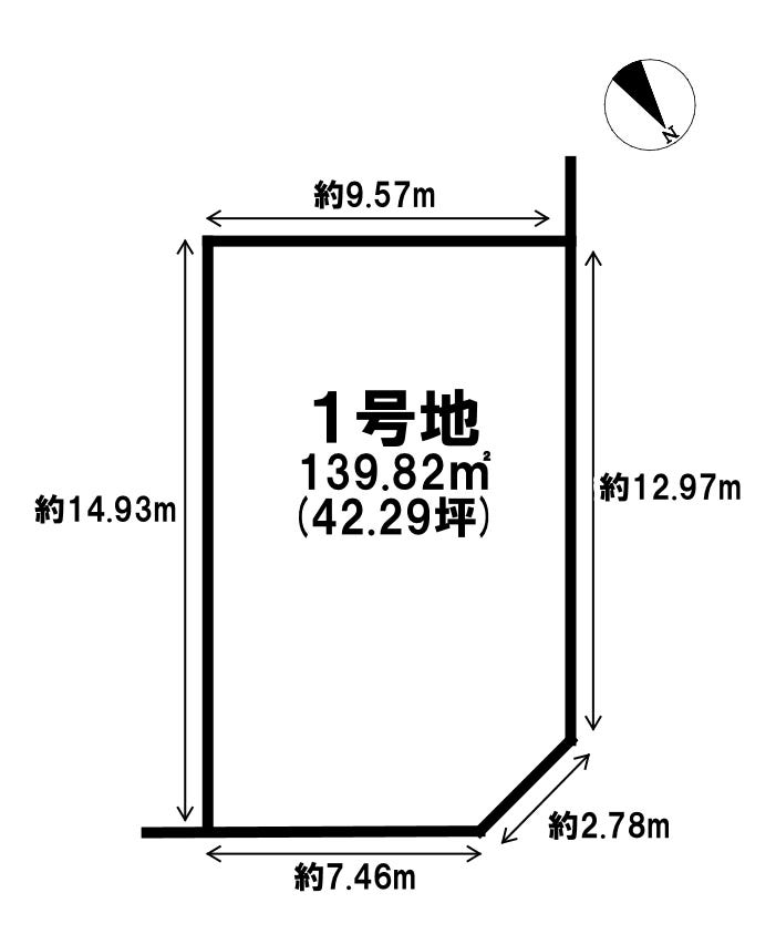 | 土地面積 | 公139.82㎡(42.29坪) | 接道 | 北東側(公道)幅 約6.0m 間口 約7.46m 北西側(公道)幅 約4.0m 間口 約12.97m |