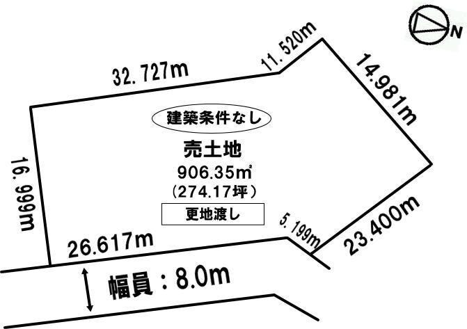 | 土地面積 | 公906.35㎡(274.17坪) | 接道 | 東側(公道)幅 約8.0m 間口 約37.55m |