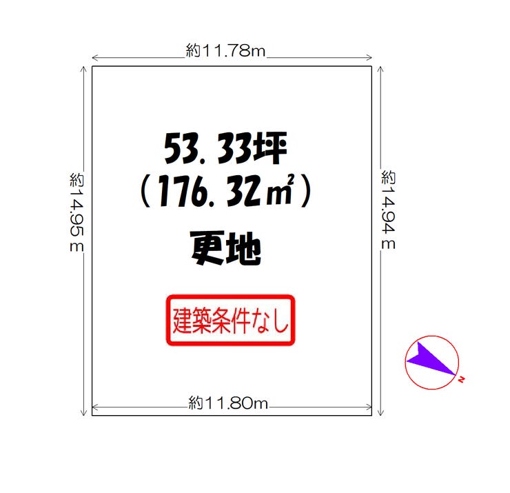| 土地面積 | 公176.32㎡(53.33坪) | 接道 | 北東側(公道)幅 約5.0m |